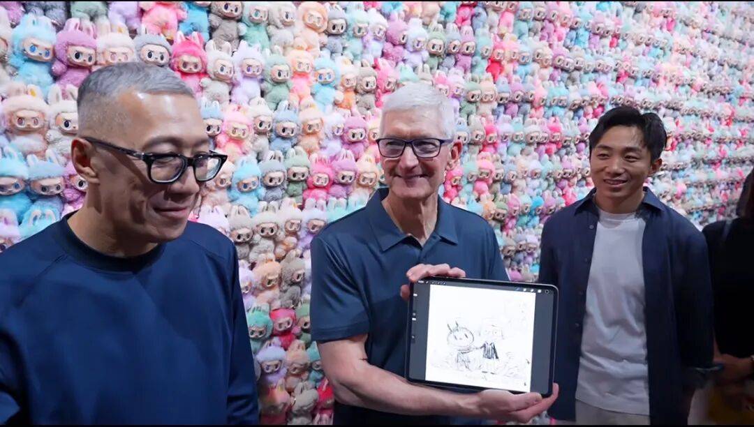 10月13日,苹果公司CEO库克在中国行首站现身THE MONSTERS 10周年巡展,泡泡玛特创始人王宁与LABUBU设计者龙家升陪同参观。龙家升还赠送给库克一个特殊的LABUBU玩偶,该玩偶穿黑衣服、白鞋子、戴眼镜,左手拿着iPhone手机。