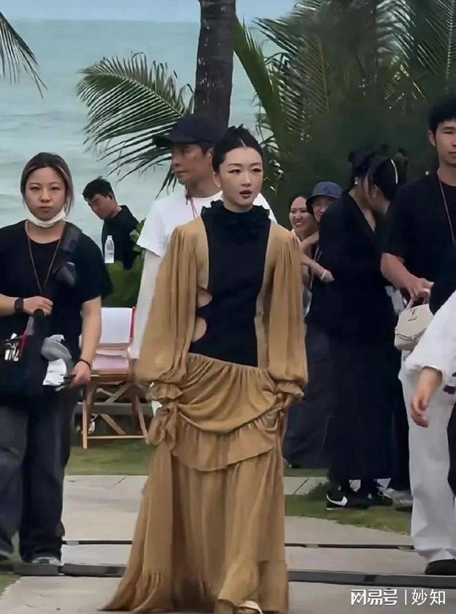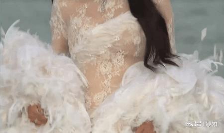 同样身材很好的张馨予则不同,身穿25斤拖地礼服,任凭海边的风再大,都吹不动她分毫!